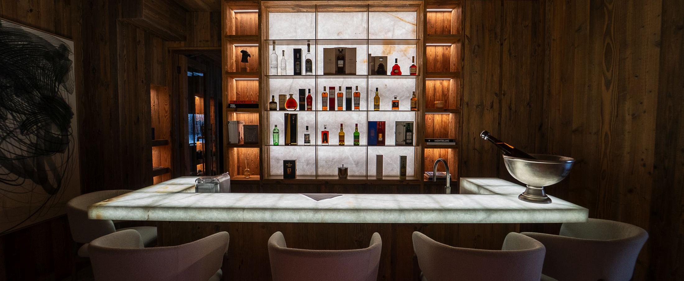 Whether travelling as a large group of friends or a mix of family groups, Chalet Moon 1850 has several wonderful entertainment options. Of course, that's when you're not taking advantage of the chalet's prime location to explore all the best things to do in Courchevel 1850. A sumptuous cinema room delivers the ultimate home theatre experience, while a separate snug TV lounge is on hand to avoid any disagreements on what to watch. For family ski holidays to Courchevel 1850, the chalet is equipped with a playroom with games and toys for little ones, while adults will delight in some après ski revelry in the chalet's chic bar area.