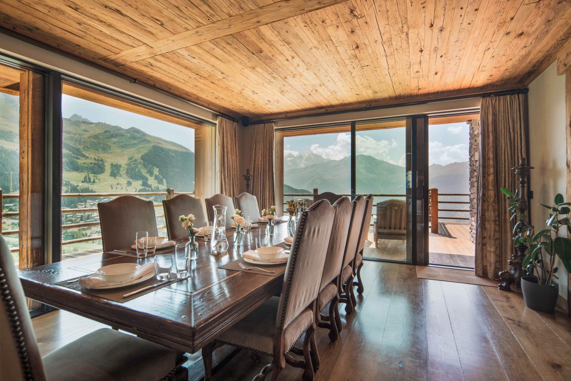 The upper floors of the two chalets house spacious, stylish, open-plan living spaces, utilising reclaimed wooden interiors and airy, vaulted ceilings to magnificent effect. Chalet Sirocco features an expansive, free-flowing main lounge and dining room, with enough space to host up to 20 guests for dinner, while the lounge and dining areas of Chalet Norte have a more opulent, stately quality. Mammoth, open stone fireplaces bless you and your guests with a soothing warmth during cold winter nights. Both living spaces feature giant picture windows, positioned to make the most of the breathtaking mountain vistas afforded by the chalet's elevated position. With extensive balconies and terrace areas to both chalets, you can enjoy these views in the clean mountain air, with a glass of Champagne on return from skiing in Verbier the icing on the cake to your wondrous ski day.