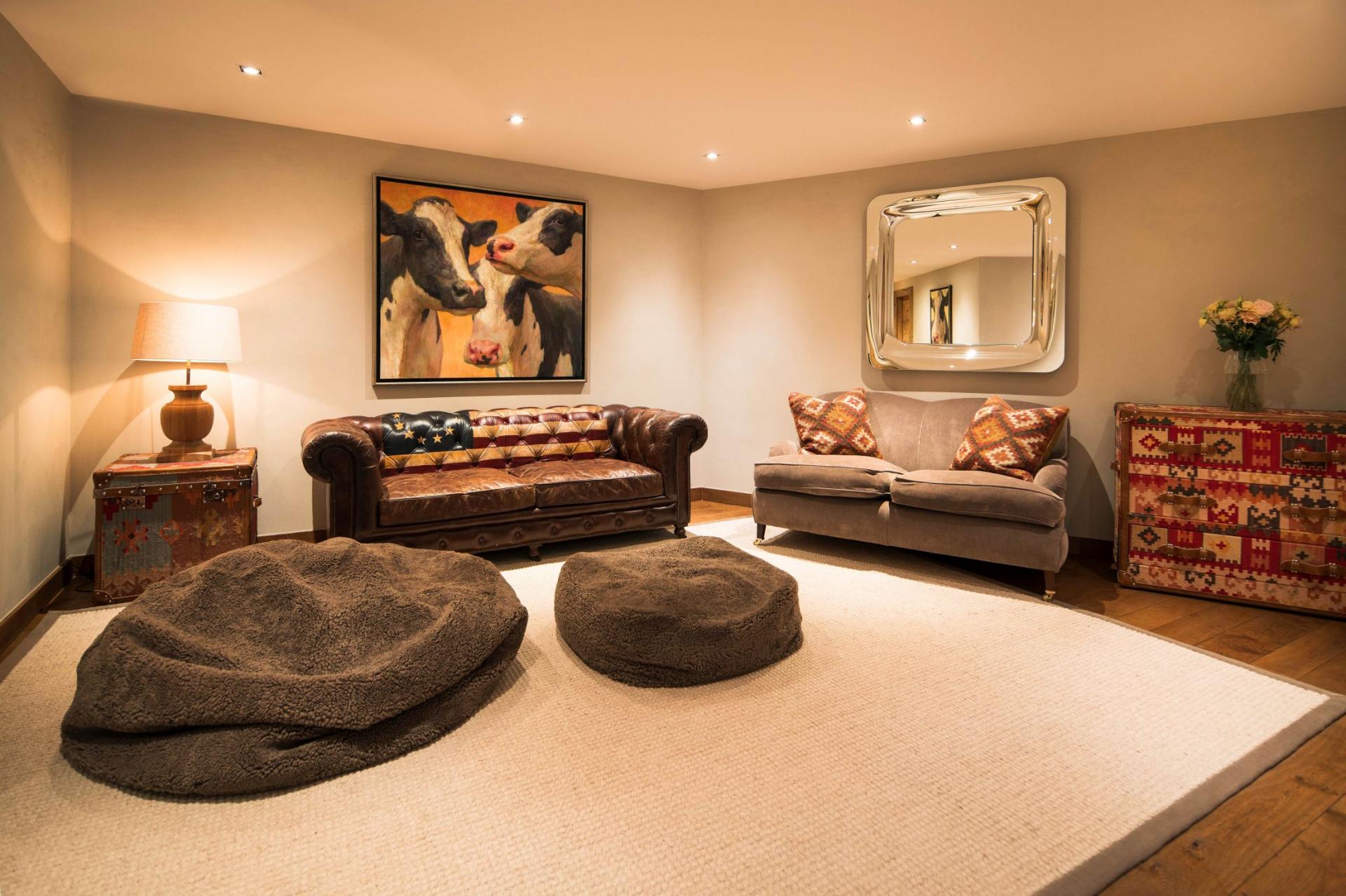 The Alpine Estate features several additional living spaces across its colossal area, including a bar, wine cellar, and kitchenette, separate to the two main kitchens of the chalet. These are great spaces to unwind in smaller groups, as well as to prepare snacks and drinks for a snug movie night spent in one of the plush TV lounges.